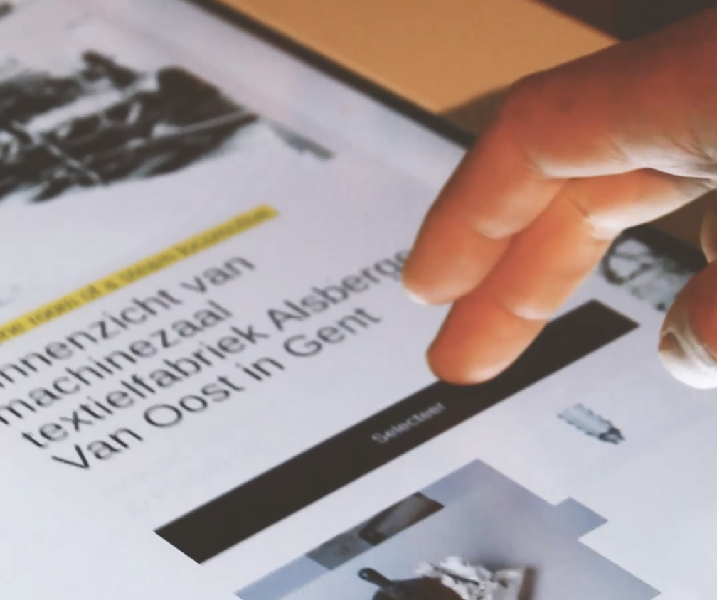 An interactive installation allowing visitors to explore the entire digital collections of four musea, pick an element and add it to a communal collage.